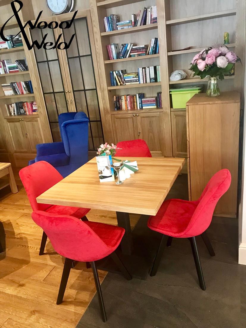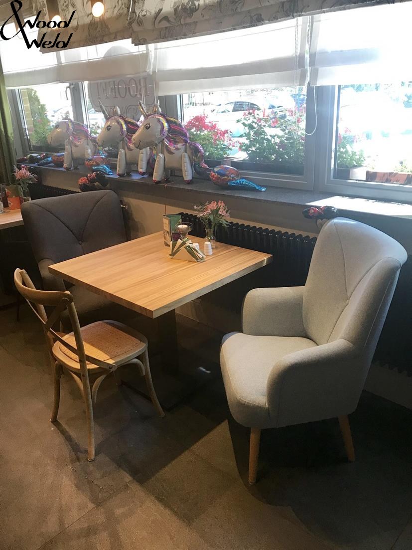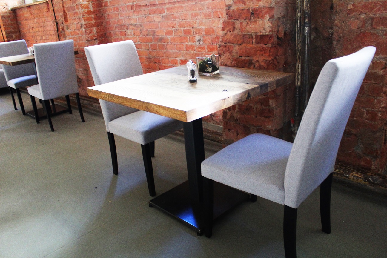 Stół jadalniany Phil ma piękne wykończenie z litego drewna dębowego lub sosnowego, dzięki czemu restauracja, kawiarnia czy bar mają industrialny, wyrafinowany klimat. Metalowe elementy pomalowane proszkowo na kolor czarny bądź szary dodają szyku i elegancji. Rozmiar i kolor blatu, wykończenie metalowych nóg można personalizować zgodnie ze swoimi preferencjami.