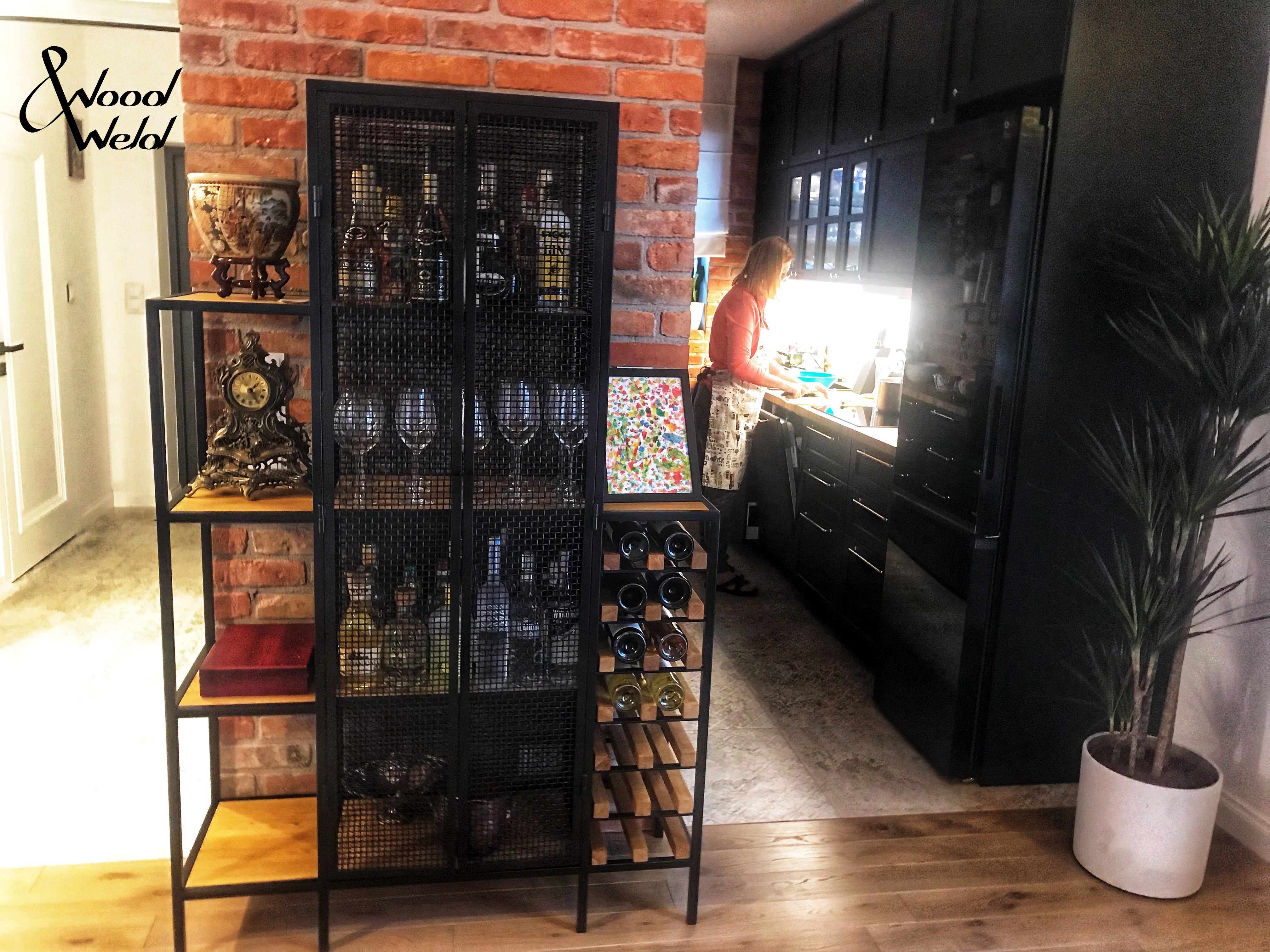 Winiarka utrzymana w stylu loftowym zachwyci niejednego konesera win. Idealnie nada się pod domową kolekcję. Konstrukcja Winiarki oparta na metalowych profilach. Dębowe półki nadają jej elegancji, a wypełnienie z siatki ciekawie dopełnia klimat mebla.